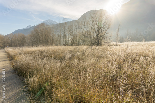 park, forest with frost, winter landscape