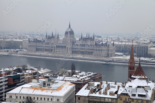 parliament building and Danube river at winter, Budapest