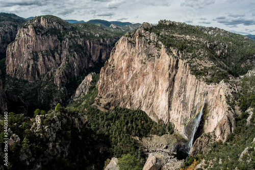 landscape, mountain, nature, heaven, rock, travel, blue, view, cloud, waterfall, forest, tree, green, outdoors, view, chihuahua, mexico