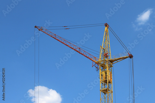 arm, blue, bright, building, business, cabin, cloud, construction, crane, crane, day, engineer, engineering, equipment, frame, high, hoist, hoisting, horizontal, industrial, jib, job, lift, lifting, light, machinery, mechanical, metal, metallic, modern, new, nobody, outdoors, part, site, sky, stationary, steel, structure, tall, technology, tower, white, work, yellow