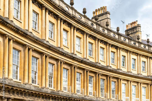 Part of the façade of historic ring of townhouses on The Circus in Bath, Somerset, UK designed by architect John Wood, the Elder built between 1754 and 1768 in Georgian architecture