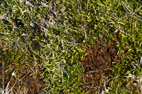 Part of the ground area with a moss and grass