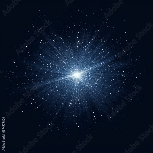 Particles radiating from center on navy background, clean tech style and futuristic design