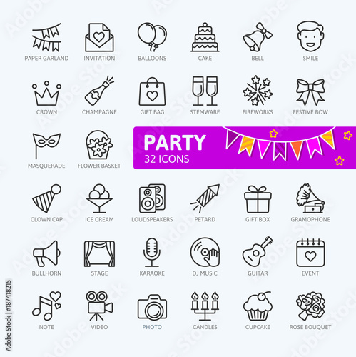 Party elements - minimal thin line web icon set. Outline icons collection. Simple vector illustration.