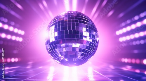Party in Purple: Close-Up of Disco Ball and Lively Lights Creating a Festive Atmosphere