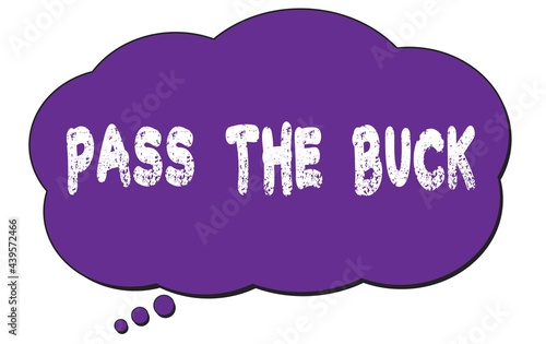 PASS THE BUCK text written on a violet thought cloud bubble.