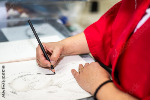 Passionate Artist Woman Creating A Pencil Portrait In A Studio Filled With Inspiration, Expressing Her Unique Talent And Artistic Vision Through Realistic Sketching