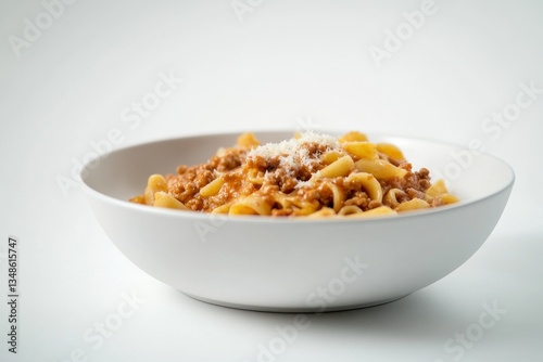 Pasta dish with meat sauce and grated cheese