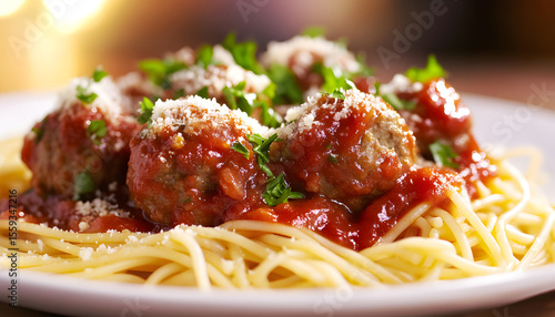 pasta, meatball, parsley, tomatoes, sauce, food, plate, italian, cookery, meat, herb, dish, topview, dinner, lunch, tasty, cooked, epicure, rustic, carb, healthy, traditional, nourishment, red, spaghetti, delicious, mediterranean, closeup, savoury, seasoning, pepper, cheesy, homemade, culinary
