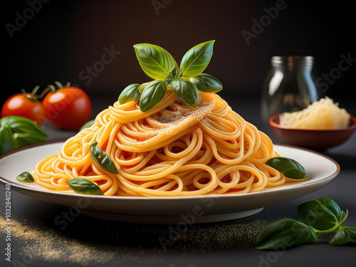 pasta, spaghetti, food, italian, meal, plate, dinner, sauce, dish, cookery, lunch, tomatoes, basil, noodle, cheese, carbonara, white, epicure, fresh, healthy, eat, mediterranean, vegetable, cooking, italy
