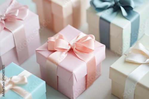 Pastel Colored Gift Boxes with Ribbons for New Year