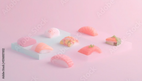 sushi, food, minimalist, aesthetic, colourful, still life, display, arrangement, seafood, delicacy, asian cuisine, confectionery