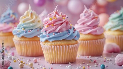 Pastel cupcakes, sprinkles, party background, sweet treat, dessert photography