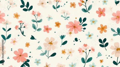 floral, pattern, flower, design, background, pastel, pink, orange, blue, green, leaf, spring, summer, texture, seamless, repeat, illustration, pretty, cute, whimsical, delicate, soft, gentle, romantic, feminine, flower, botanical, blossom, bloom, plant, bud, bud, print, blossom
