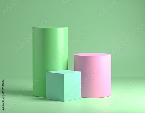 Pastel Green Pink Cylinders Cube Minimalist Product Display Scene