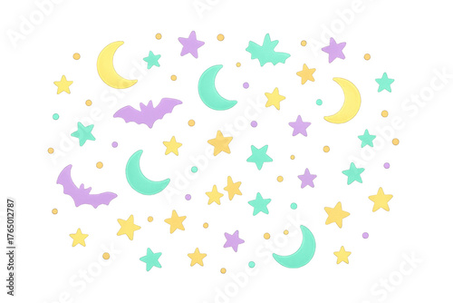 halloween, pattern, pastel, cute, moon, star, bat, night, seamless, vector, skittish, adorable, autumn, decoration, celebration, children, design, graphic, illustration, trick, treat, holiday, creepy, october, soft, colours, childish, repeat, textile, wallpaper, print, fabric, digital, paper, fantasy, magic, sweet, dream, sleep, invitation, party, baby, childcare center, texture, transparent, background, isolated, white