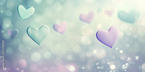 Pastel Hearts Floating in a Dreamy, Magical Light