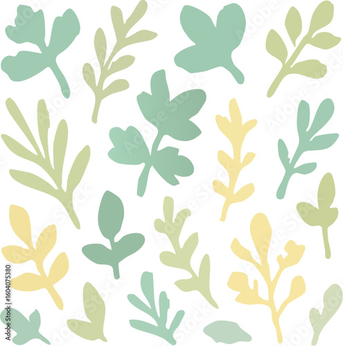 leaf, leaf, pattern, seamless, pastel, green, yellow, botanical, nature, foliage, plant, background, design, vector, illustration, floral, organic, spring, summer, autumn, fall, herb, herb, decorative, element, textile, wallpaper, fabric, surface, print
