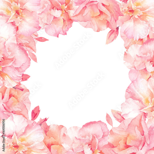 oleander, flower, bud, watercolor, frame, pastel, wedding, mediterranean, decor, travel, abstract, colourful, greeting, invitation, blossom, holiday, peach, beautiful, natural, isolated, floral, white, realistic, birthday, art, elegance, painting, hand-drawn, romantic, flora, postcard, drawing, decoration, card, twig, exotic, bloom, botanical, green, bouquet, garden, illustration, pink, summer, design, nature, tropical, plant, template
