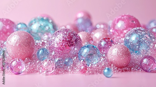 bead, water, pastel, pink, blue, sphere, bubble, shiny, glossy, colourful, decorative, background, texture, surface, closeup, macro, photo, art, design, abstract, pretty, aesthetic, cute, delicate, elegant, romantic, feminine, dreamy, soft, gentle, sparkly, vibrant, light, bright, beautiful, semitransparent, round, glistening