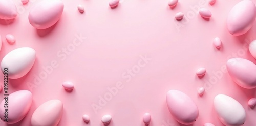 Pastel pink background, scattered pink & white Easter eggs , texture, texture, vintage