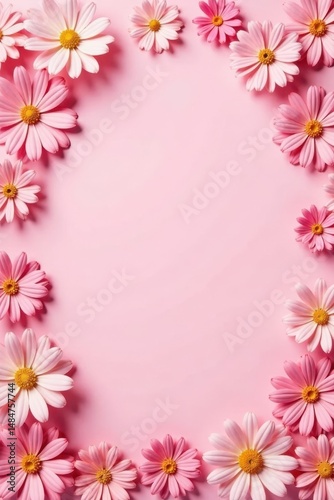 Pastel pink background with scattered flowers, garden, soft pink background