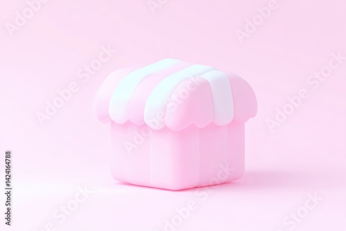 Pastel pink dessert box, 3D rendering. A cute, simple, square, pink confectionery box with white stripes, subtle curves, and a soft, pastel aesthetic