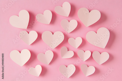 Pastel pink hearts on a Valentine's Day romantic background. Love, romance, marriage.