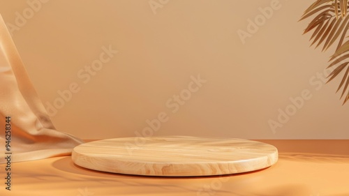 Pastel shades wooden podium abstract scene. Empty stage minimalistic boho design background. Stand product showcase on beige background.