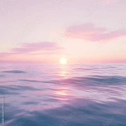 Pastel sunset over a calm ocean creates a serene atmosphere in the evening sky