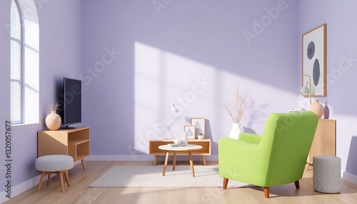 television, room, rendering, pastel, green, decoration, armchair, accessory, three-dimensional