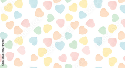 Pastel Watercolor Hearts Seamless Pattern on White Background for Valentine's Day