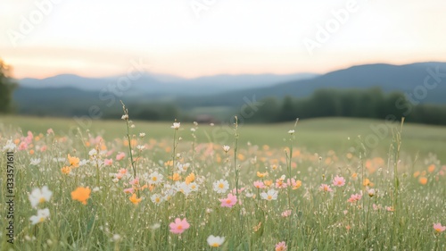 wildflower, flower, field, sunrise, morning, pastel, pink, orange, white, green, hill, landscape, nature, scenery, spring, summer, dawn, light, soft, beauty, peaceful, serene, calm, tranquil, meadow, countryside, rural, scenic, vibrant, blooming, flora, botanical, delicate, fresh, colours, natural, plant, floral, background, image, photo, photo, picture, illustration
