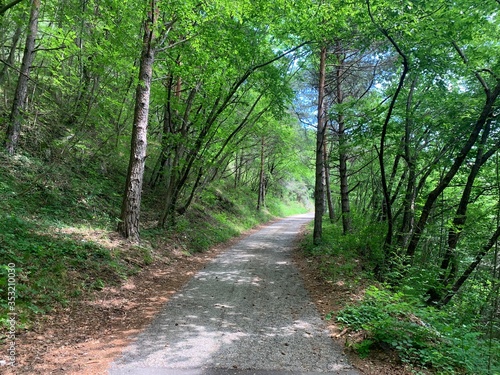 forest, road, path, nature, tree, tree, green, landscape, wood, trail, wood, park, summer, autumn, spring, way, foliage, footpath, grass, leaf, country, environment, lane, sunny