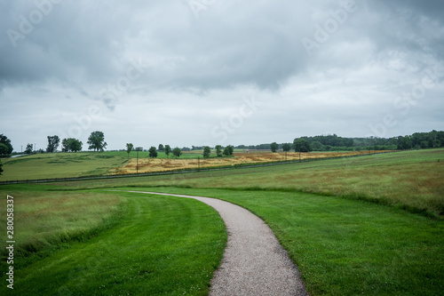 path, trail, walking, landscape, road, field, sky, grass, nature, green, meadow, tree, blue, rural, country, golf, summer, cloud, cloud, spring, countryside, farm, forest, tree, horizon, way, course
