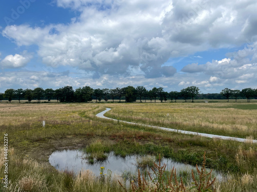 duck pond, path, tree, national park, holland, cloud, nature, landscape, grass