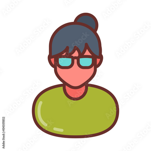 patient, female, lady, bun, coiffure, goggles, green shirt, girl, student, signs, symbol, outline, filled, colours, icon, isolated, illustration, vector, stroke