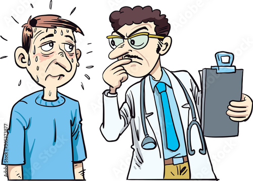 doctor, health, patient, vector, disease, disease, illustration, sick, person, fever, cold, flu, care, disease, virus, temperature, man, pain, cartoon, perspiring, medicals, signs, sweating, nausea, symptom, flu, cute, people, symbol