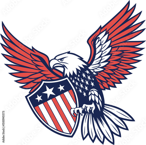 Patriotic Bald Eagle Holding Shield – USA Symbol Vector with Stars and Stripes