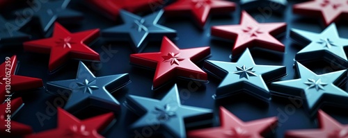 Patriotic Celebration with Rows of Red and Blue Stars Decorations for Holiday and Event