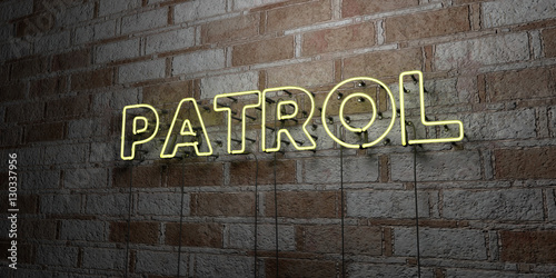 PATROL - Glowing Neon Sign on stonework wall - 3D rendered royalty free stock illustration. Can be used for online banner ads and direct mailers..