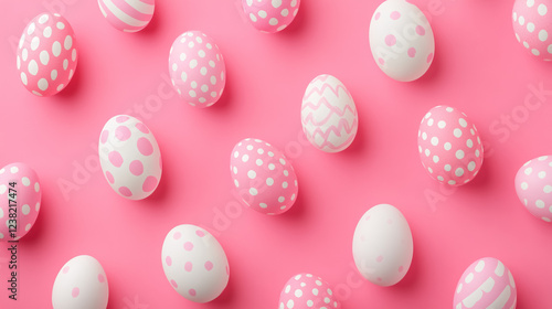Pattern featuring pink and white Easter eggs on a pink backdrop.