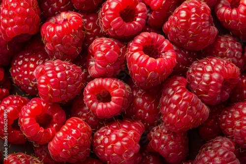 Pattern of raspberry on dark rock background. Flat lay summer berries - red raspberries. Creative minimalism. Frony view. Beautiful simple AI generated image in 4K, unique.