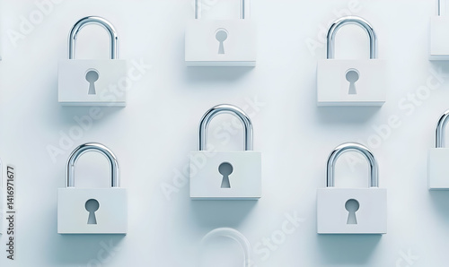 Pattern of White Padlocks with One Highlighted on a Light Background