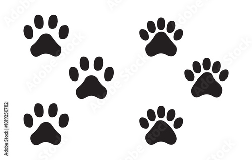 Paw print set dog or cat footprints isolated on white background animal trail