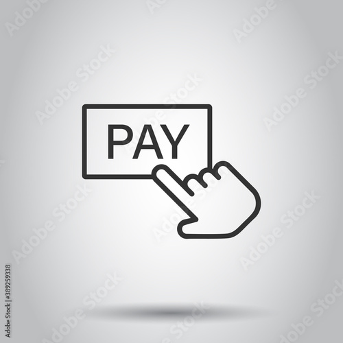 Pay shop icon in flat style. Finger cursor vector illustration on isolated background. Click button business concept.