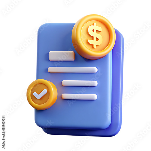 agreements, finance, payment, coin, dollar sign, symbol, invoice, bill, graphic, illustration, blue, gold, rendering, cartoon, business