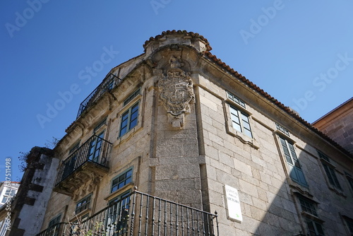 'Pazo de Fondevila', typical palatial architecture of the Compostela baroque. The decoration focuses on the chamfered corner of the building Santiago de Compostela, Galicia, Spain 10092023