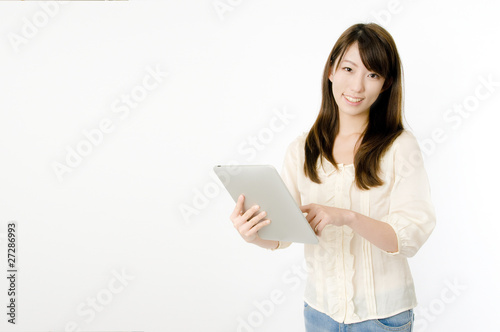 woman, personal computer, tablet, finger, operation, cyberspace, personal computer, jean, model, fashion, health, young, youth, sweet, pretty, beauty, happy, smile, smile, smile, smile, eye, long hair, black hair, portrait, people, man, indoor, indoor, white, light, asian, asia, japan, japanese, waist up, natural