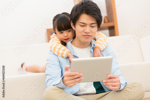 japanese, cyberspace, couch, lifestyle, living room, love, child rearing, indoor, family, vacation, show, look, seated, 30s, children, possess, girl, people, man, adult, man, chum, cuddle, two people, japan, father, passion, daughter, toddler, ipad